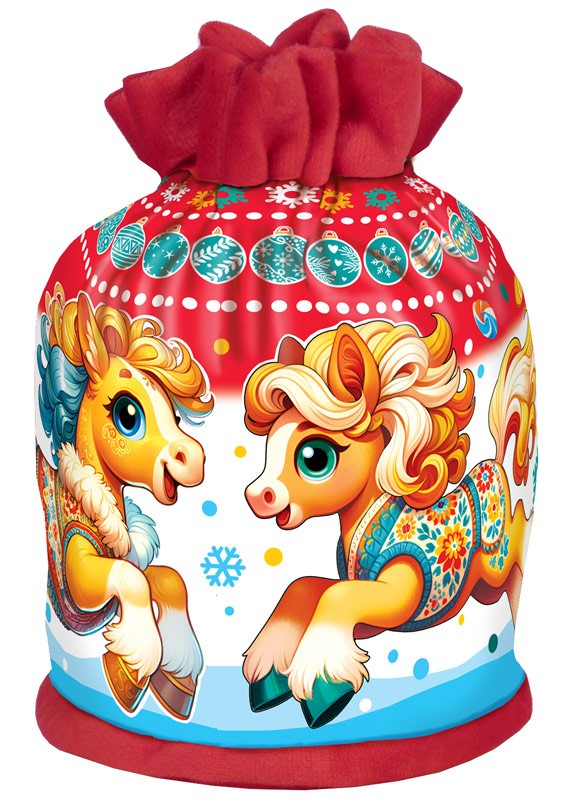 Мешок велюровый красный, Лошади, вместимость 1000гр |