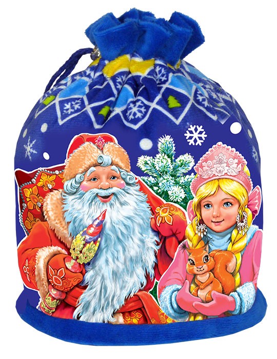 Мешок велюровый синий,ДМ + Снегурочка, 50гр, 25*23см, вместимость 1000гр |